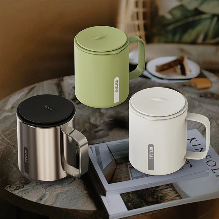 पानी पीते समय लंबे समय तक कार्यालय में बैठना, ढक्कन को एक क्लिक से खोलने से काम में बाधा नहीं आती, इन्सुलेशन और शीतलन प्रदान होता है, कॉफी और चाय के लिए उपयुक्त;