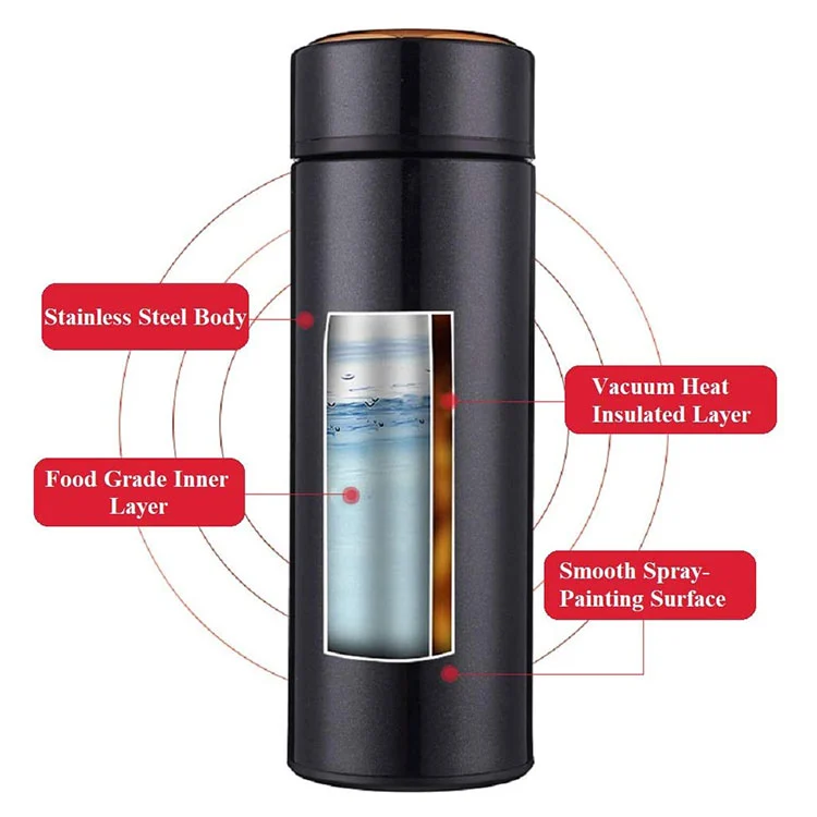- डबल दीवार वाले वैक्यूम इन्सुलेशन तकनीक यह सुनिश्चित करती है कि आपके पसंदीदा पेय (कॉफी, सूप, दूध, रस आदि) अगले कुछ घंटों के लिए वांछित तापमान बनाए रखेंगे। हॉट ड्रिंक 24 घंटे तक रह सकते हैं और कोल्ड ड्रिंक 12 घंटे तक रह सकते हैं। ढक्कन में एक स्टेनलेस स्टील इनर कोर और सेफ्टी फूड ग्रेड सिलिकॉन सील रिंग शामिल हैं। इसका उपयोग कई इन्सुलेशन और 360 ° लीकप्रूफ प्रदान करने के लिए आइसोमेट्रिक थ्रेड डिज़ाइन के कप मुंह के साथ किया जाता है।