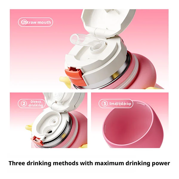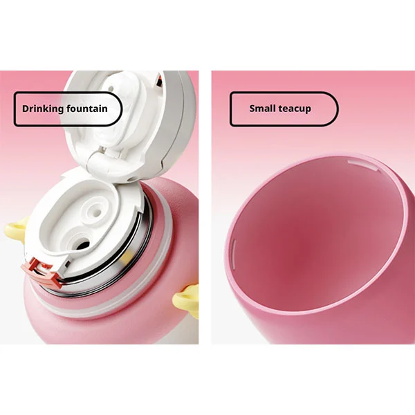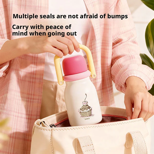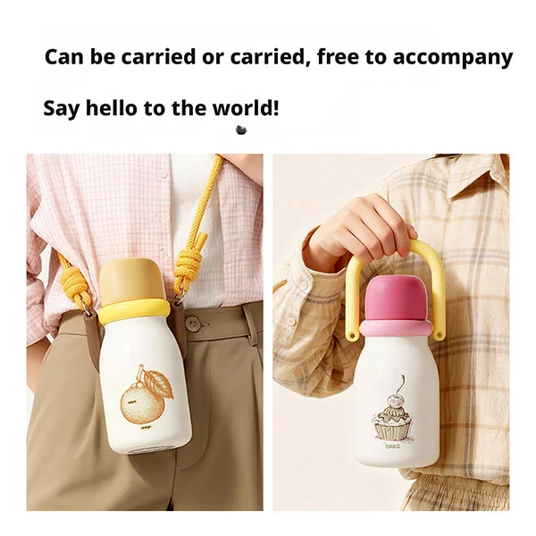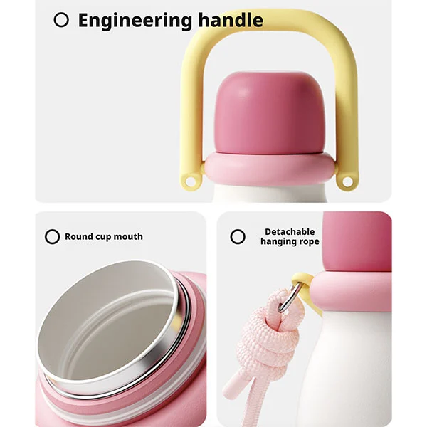 BPA मुक्त थर्मस कप में एक एर्गोनोमिक बोतल बॉडी डिज़ाइन है, जिससे इसे बच्चों (18 महीने से अधिक) के लिए अपने छोटे हाथों से पकड़ना आसान हो जाता है।