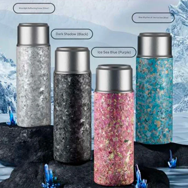 टाइटेनियम इज़ोथर्मल पानी की बोतल में एक विस्तृत कैलिबर डिज़ाइन है, जिससे बर्फ के टुकड़े रखना, साफ करना और पेय बनाना आसान हो जाता है।